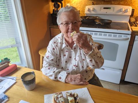 Mom suffered from dementia for over six years but remained cheerful and positive through it all.